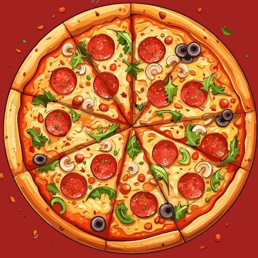 Molho, Calabresa, Tomate, Champignon, Cebola, Palmito, Mussarela, Bacon, Orégano e Azeitonas.